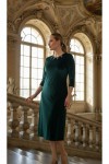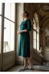 Nidya Moda Büyük Beden Kadın Yeşil Yaka İnci Işli Kadife Abiye Elbise-4072y