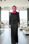 Nidya Moda Büyük Beden Tesettür Kadın Siyah Balık Saten Abiye Etek-3003TS