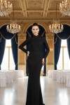 Nidya Moda Büyük Beden Tesettür Kadın Siyah Dantel Kombin Balık Krep Uzun Abiye Elbise-4154S