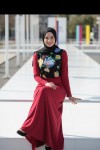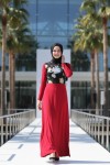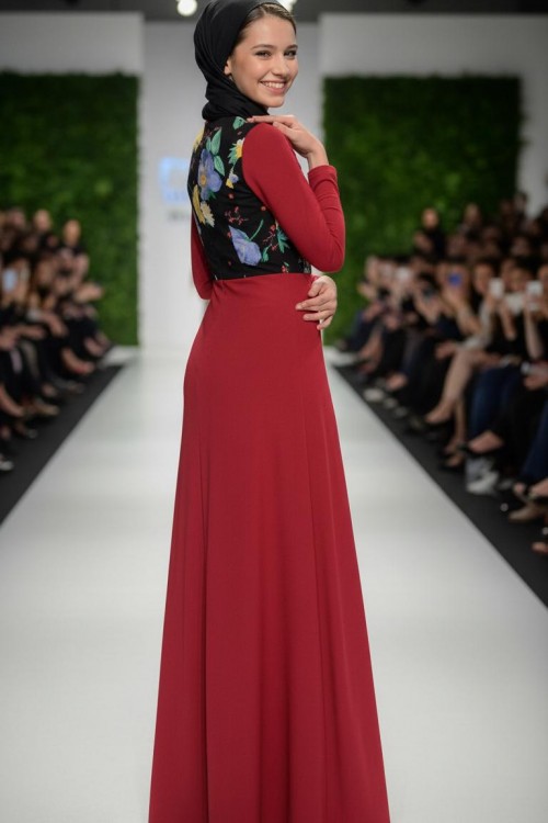 Nidya Moda Tesettür Kadın Kırmızı Üst Vual Çiçekli Sandy Abiye Elbise-4046TK