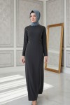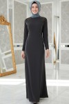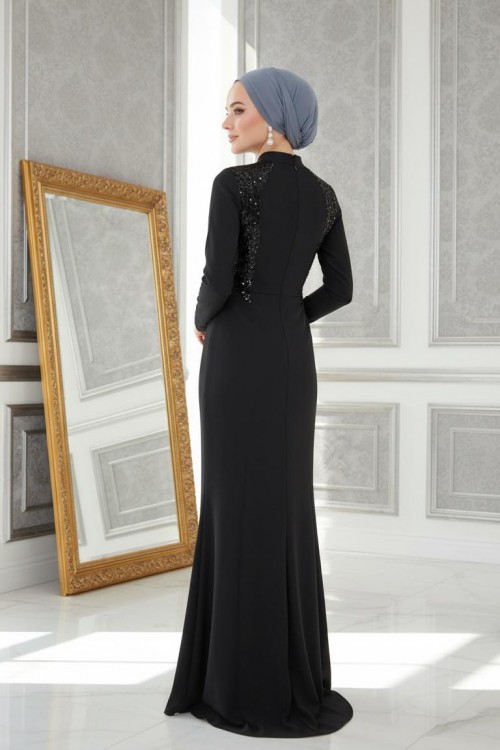 Nidya Moda Tesettür Kadın Lacivert Kupları Pullu Payet Kombinli Balık Krep Abiye Elbise-4048PTL