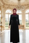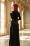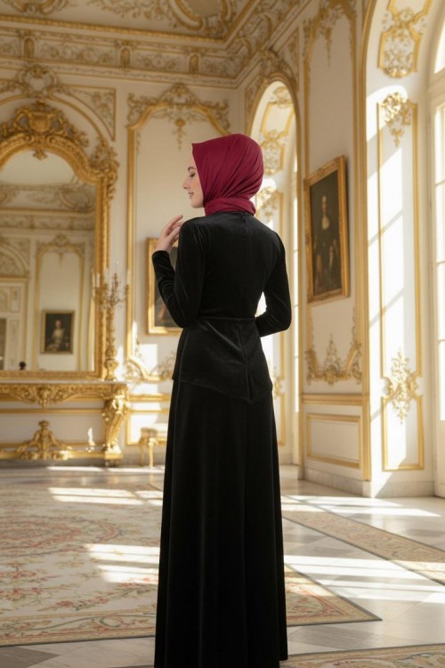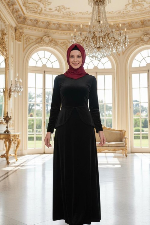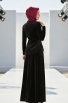 Nidya Moda Tesettür Kadın Siyah Peplumlu Kadife Abiye Elbise-4044TS