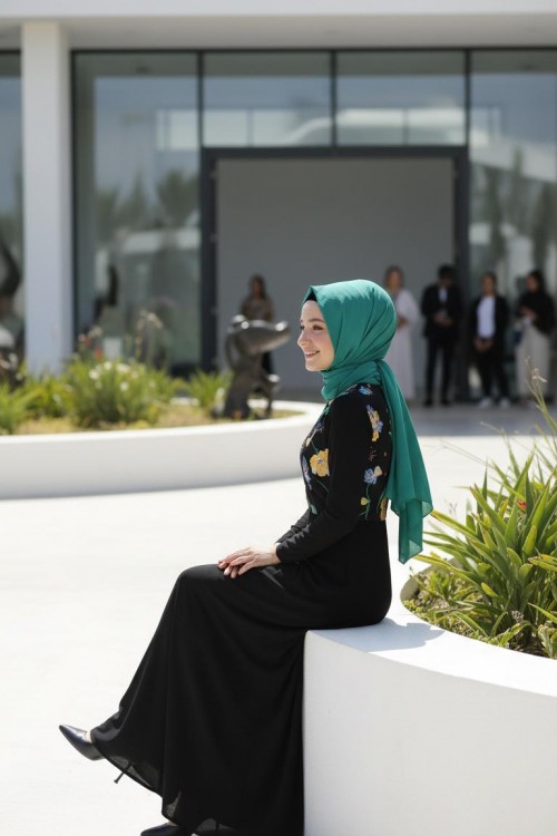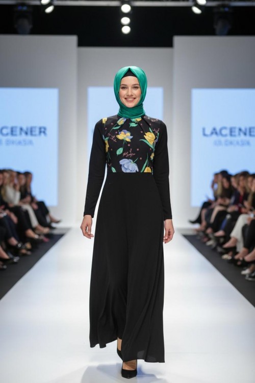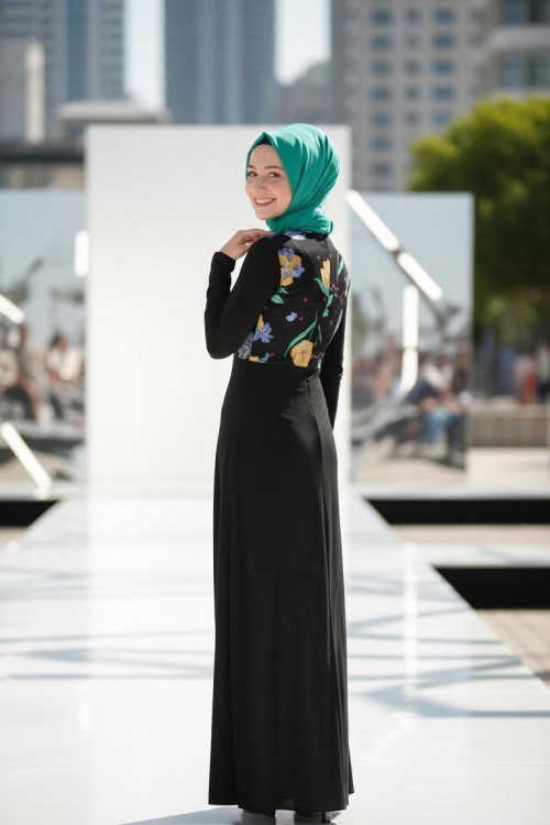 Nidya Moda Tesettür Kadın Siyah Üst Çiçekli Sandy Abiye Elbise-4046TS